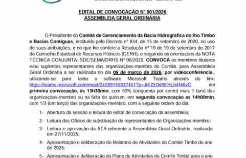 O Comitê de Gerenciamento da Bacia Hidrográfica do Rio Timbó e Bacias Contíguas divulgou a lista final das chapas homolo...