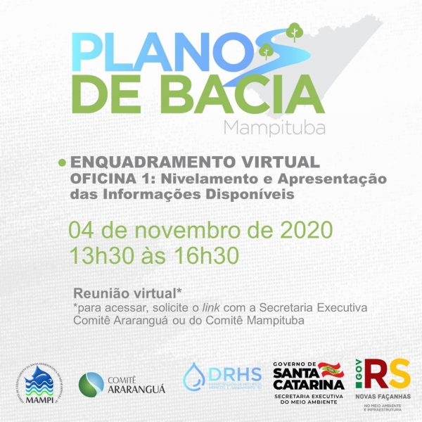 As oficinais são reservadas para membros do Comitê Araranguá e Afluentes do Mampituba e do Comitê Mampituba. Para participar da primeira oficina marcada para às 13h30 desta quarta-feira, os membros devem solicitar link da reunião para as secretarias executivas dos comitês.