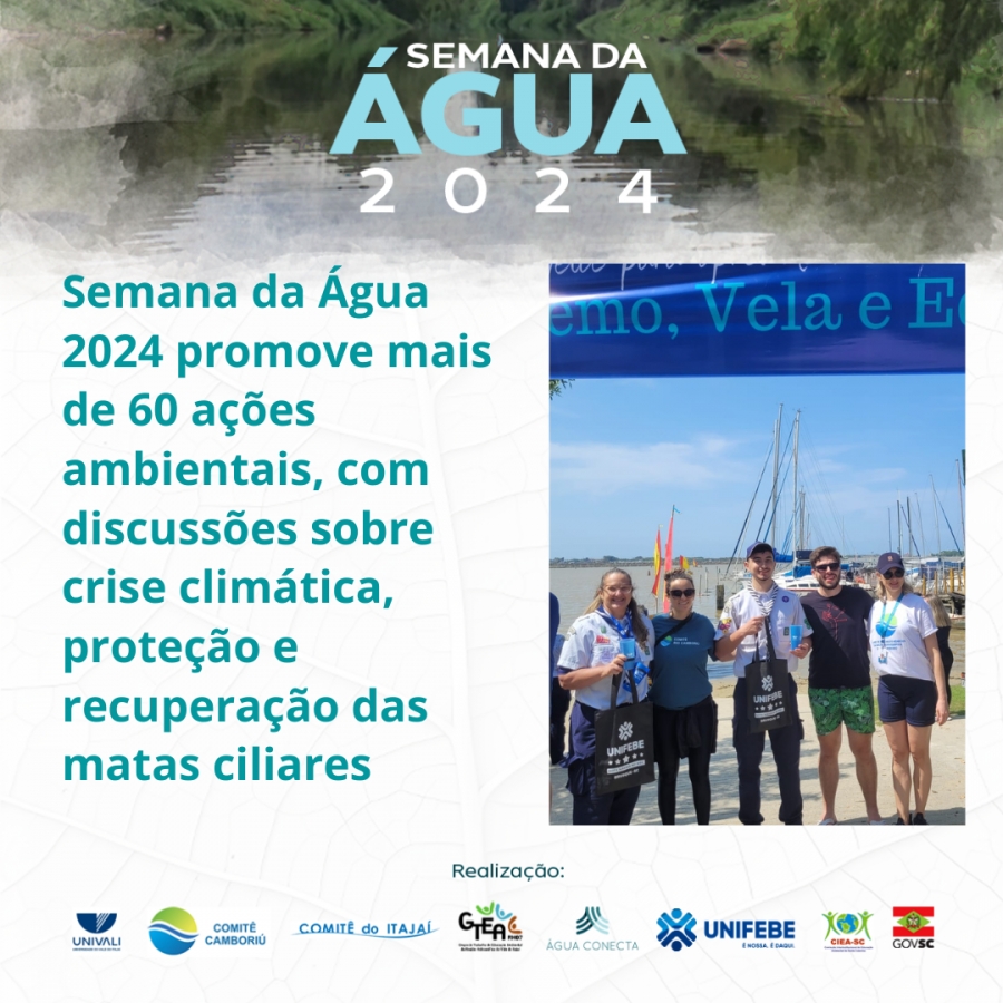 Neste ano, o evento foi realizado pelos Comitês de Bacia Hidrográfica do Rio Camboriú e do Rio Itajaí, GTEA RH07 – Grupo de Trabalho de Educação Ambiental da Região Hidrográfica 07, Instituto Água Conecta, UNIFEBE, CIEA SC e SEMAE, com apoio da UNIVALI, Instituto Federal Catarinense Campus Camboriú e AMVE Blumenau.