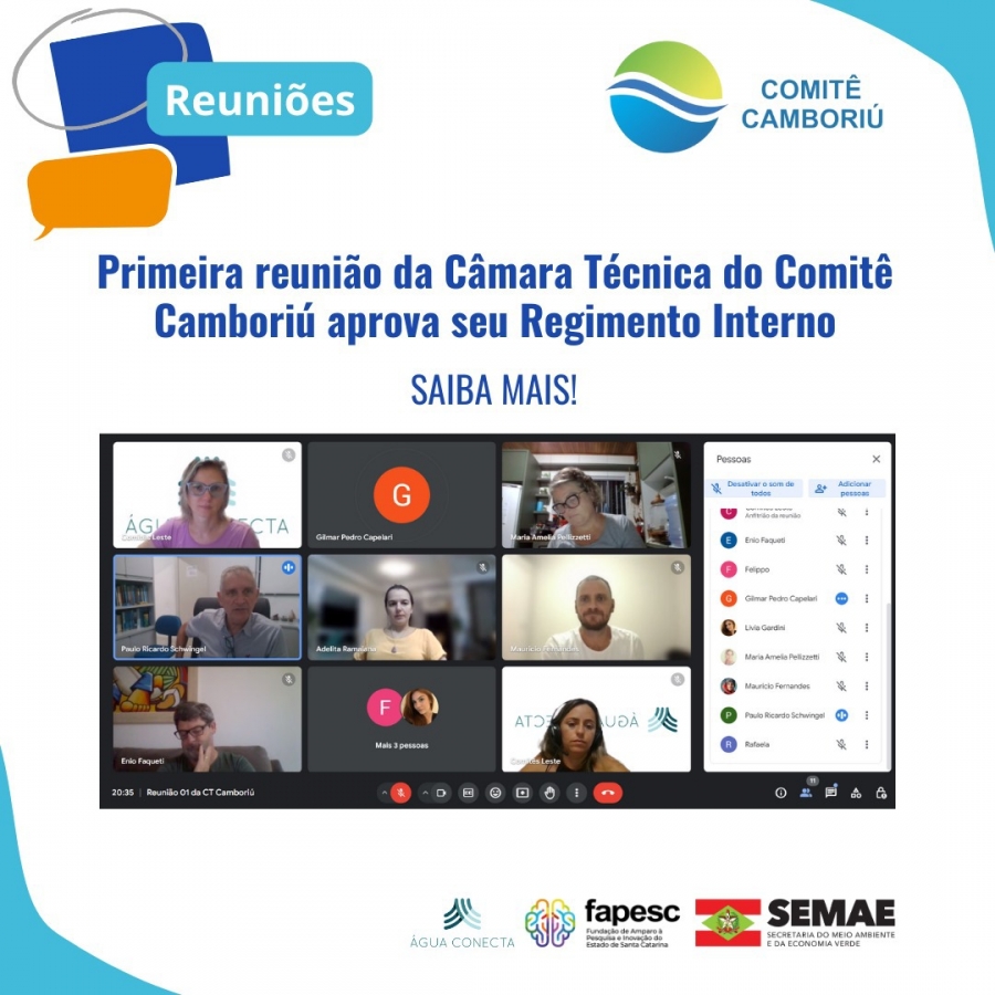 Na última terça-feira, dia 9 de abril, aconteceu a primeira reunião da Câmara Técnica (CT) do Comitê Camboriú, criada pela Resolução n° 008 de 11 de março de 2024 e composta pelas seguintes organizações-membro: UNIVALI, CREA SC, OAB BC, CRBio 09, AREA IT, IFC Campus Camboriú e EMASA.