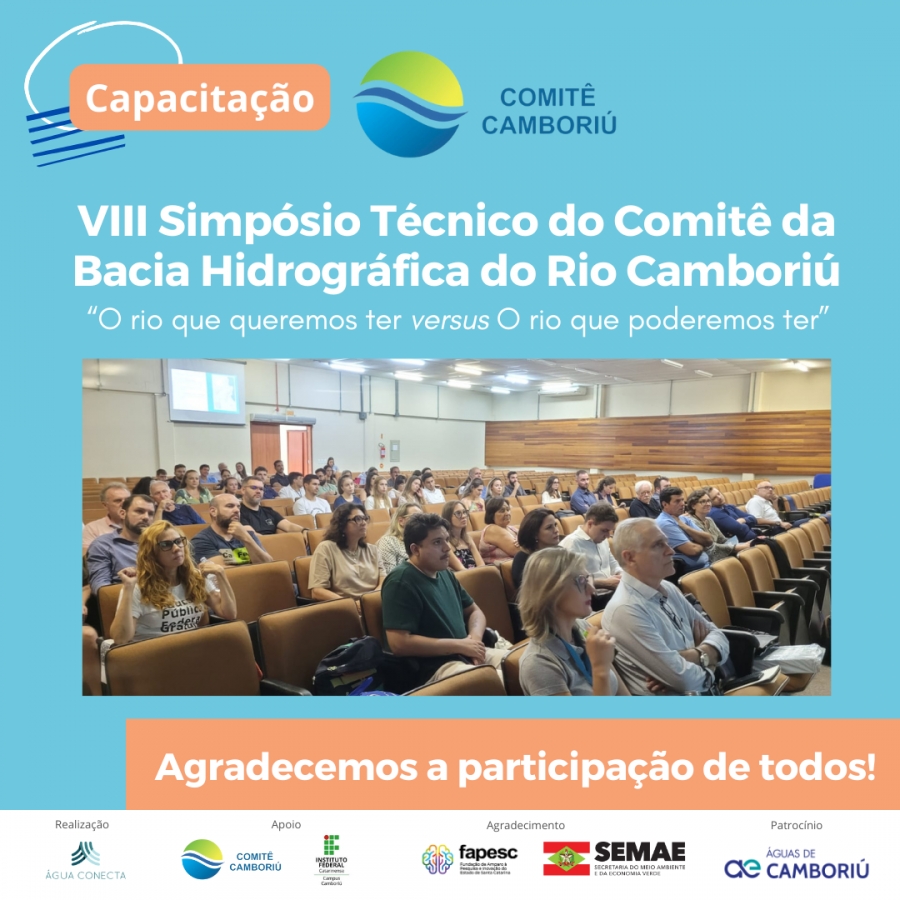 Nessa quarta-feira, foi realizado o VIII Simpósio Técnico do Comitê da Bacia Hidrográfica do Rio Camboriú, no Instituto Federal Catarinense de Camboriú, que reuniu cerca de 80 pessoas. O evento teve como tema o enquadramento dos corpos hídricos, instrumento que define padrões e metas de qualidade para os rios e demais corpos hídricos, considerando os seus diferentes usos.