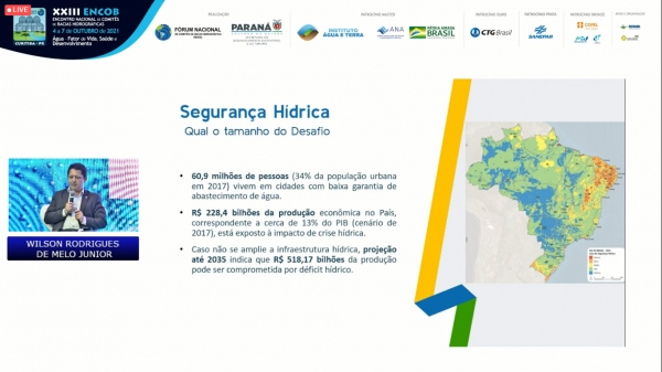 O XXIII Encontro Nacional de Comitês de Bacias Hidrográficas (Encob) iniciou nesta segunda-feira (04/10), abordando o Plano Nacional de Recursos Hídricos, a Crise Hidroenergética no Brasil e cases de sucesso de Comitês de Bacia. O evento acontece de forma remota, mas é realizada pela Secretaria do Desenvolvimento Sustentável e do Turismo do Governo do Paraná.