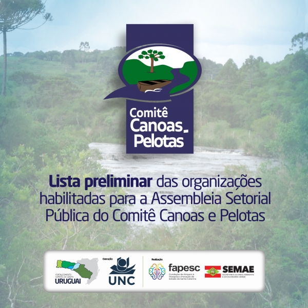 O Comitê Canoas e Pelotas encerrou as inscrições para as Assembleias Setoriais Públicas (ASPs) no 26 de abril de 2024. As ASPs são promovidas com a finalidade de selecionar as organizações-membro dos três segmentos que compõem o Comitê Canoas e Pelotas: Usuários da Água; População da Bacia e Órgãos da Administração Federal e Estadual, atuantes na bacia e que estejam relacionados com os recursos hídricos para uma gestão de 4 (quatro) anos.
