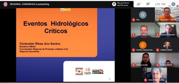 O Sargento Bombeiro Clodoaldo Ribas dos Santos, da Defesa Civil da região de Canoinhas foi um dos palestrantes do último encontro da Capacitação Conjunta dos Comitês do Planalto de Santa Catarina. Na ocasião, Santos apresentou como a Defesa Civil opera e as características dos Eventos Hidrológicos Críticos.
