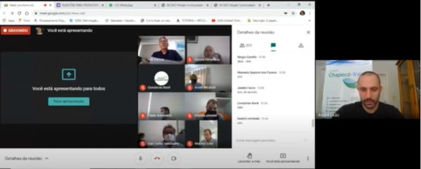 O Comitê Chapecó e Irani realizou nesta semana a Assembleia Geral Ordinária (AGO), que contou com a uma expressiva presença das entidades-membro, comprovando a representatividade do evento e legitimando todas as decisões que foram deliberadas. A AGO foi desenvolvida através de videoconferência (plataforma Google Meet). Entre os principais assuntos em pauta estiveram: apresentação do resultado da Assembleia Setorial Pública, do dia 17 dezembro 2020, aprovação ad referendum de moções e resoluções, informe da SDE (contrato com entidade executiva para assessoramento do Comitê Oeste), atualização e aprovação do plano de capacitação do Comitê, apresentação das atividades da Câmara Pro-Comitê do Rio Uruguai e apresentação da empresa contratada para atualização do Pacuera da PCH Ludesa. Para o vice-presidente do Comitê Chapecó Irani, Adir Faccio, represetante da organização-membro ARIS, a Assembleia superou as expectativas. "A AGO teve extensa pauta com 13 itens, com duração em torno de quatro horas, entre apresentações, discussões e encaminhamentos. O evento realizou-se com pleno êxito, com participação efetiva da Secretária do Comitê Manuela dos Passos e os técnicos da entidade Executiva ECOPEF André e Iara", assinala Faccio.