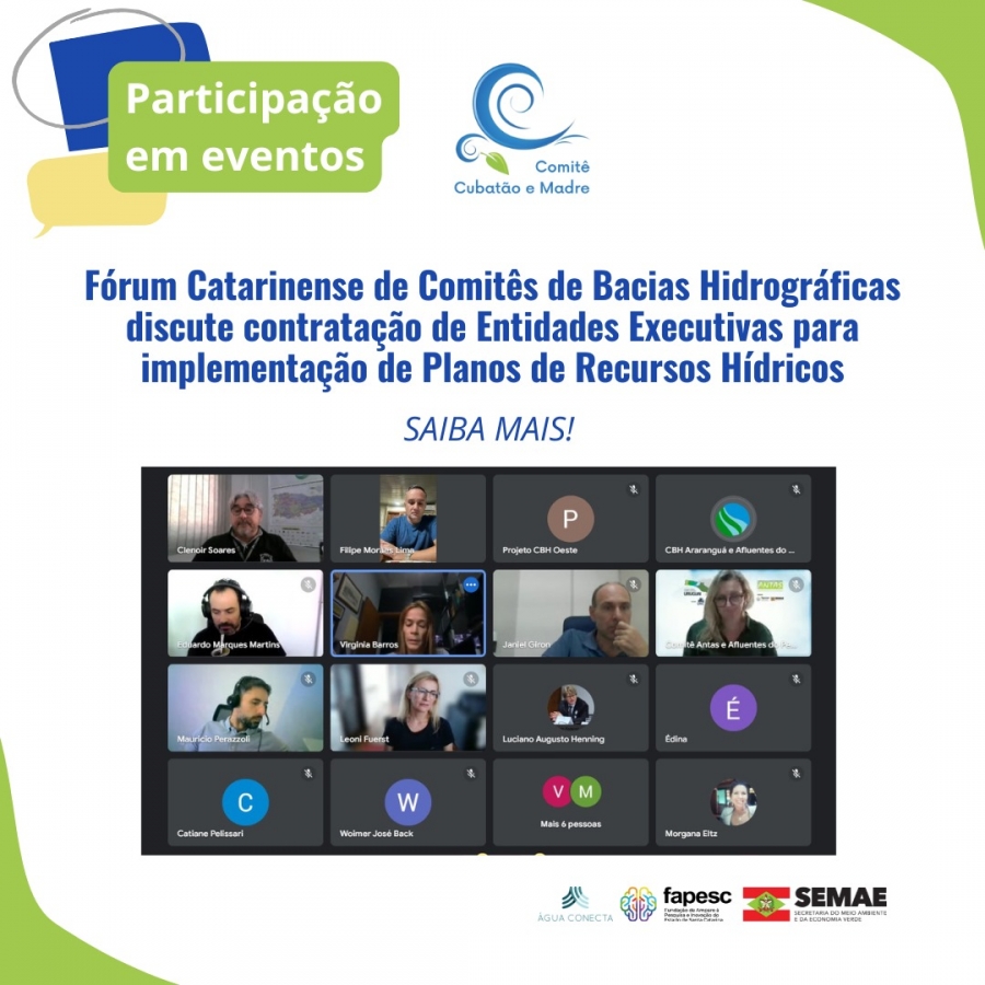 A reunião teve como principal pauta o Edital de Chamada Pública FAPESC N.º 64/2024, que prevê a contratação de novas Entidades Executivas para auxiliar na implementação dos Planos de Recursos Hídricos. Entre os objetivos do Edital estão o desenvolvimento de ferramentas que favoreçam a execução dos instrumentos de gestão, a efetividade do Sistema Estadual de Gerenciamento de Recursos Hídricos, a melhoria da qualidade das águas e a garantia de sua disponibilidade.