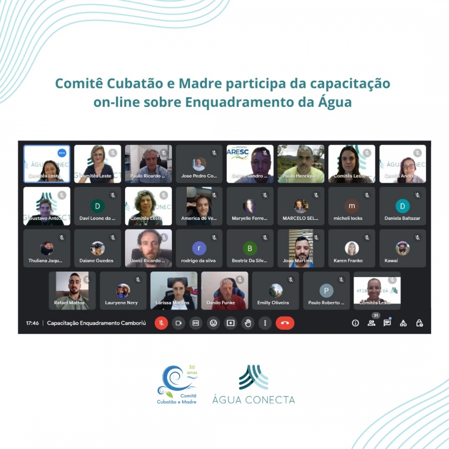Comitê Cubatão e Madre participa da capacitação on-line sobre Enquadramento da Água