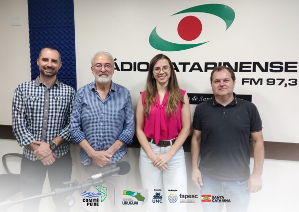 Representantes do Comitê Peixe participaram no dia 19 de outubro do Programa “No Campo das Ideias” da Rádio Catarinense de Joaçaba, apresentado por Carlos Henrique Roncalio. Estiveram presentes: Maurício Perazzoli (presidente do Comitê); Ricardo Marcelo de Menezes (secretário executivo) e Laís Bruna Verona (assessora técnica da Entidade Executiva UNC).