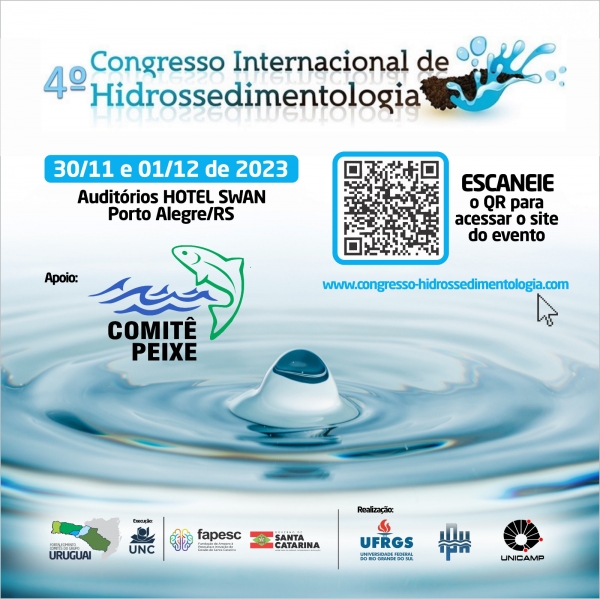 O Comitê de Gerenciamento da Bacia Hidrográfica do Rio do Peixe e Bacias Contíguas é parceiro no apoio à divulgação e promoção do 4º Congresso Internacional de Hidrossedimentologia, que será realizado em Porto Alegre, no Rio Grande do Sul, nos dias 30 de novembro e 1º de dezembro.