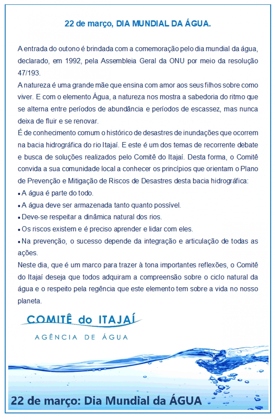 DIA MUNDIAL DA ÁGUA