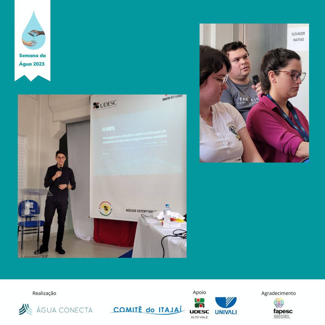 - MSc. William Jucelio Goetten da ARIS, que compartilhou suas perspectivas e desafios relacionados à utilização de soluções locais para o esgotamento sanitário;