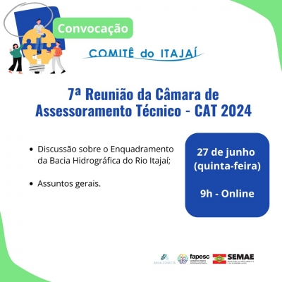 No dia 25 de julho, ocorreu a 8ª Reunião da CAT do Comitê do Itajaí. Após a leitura e aprovação da ata da 7ª Reunião de 2...