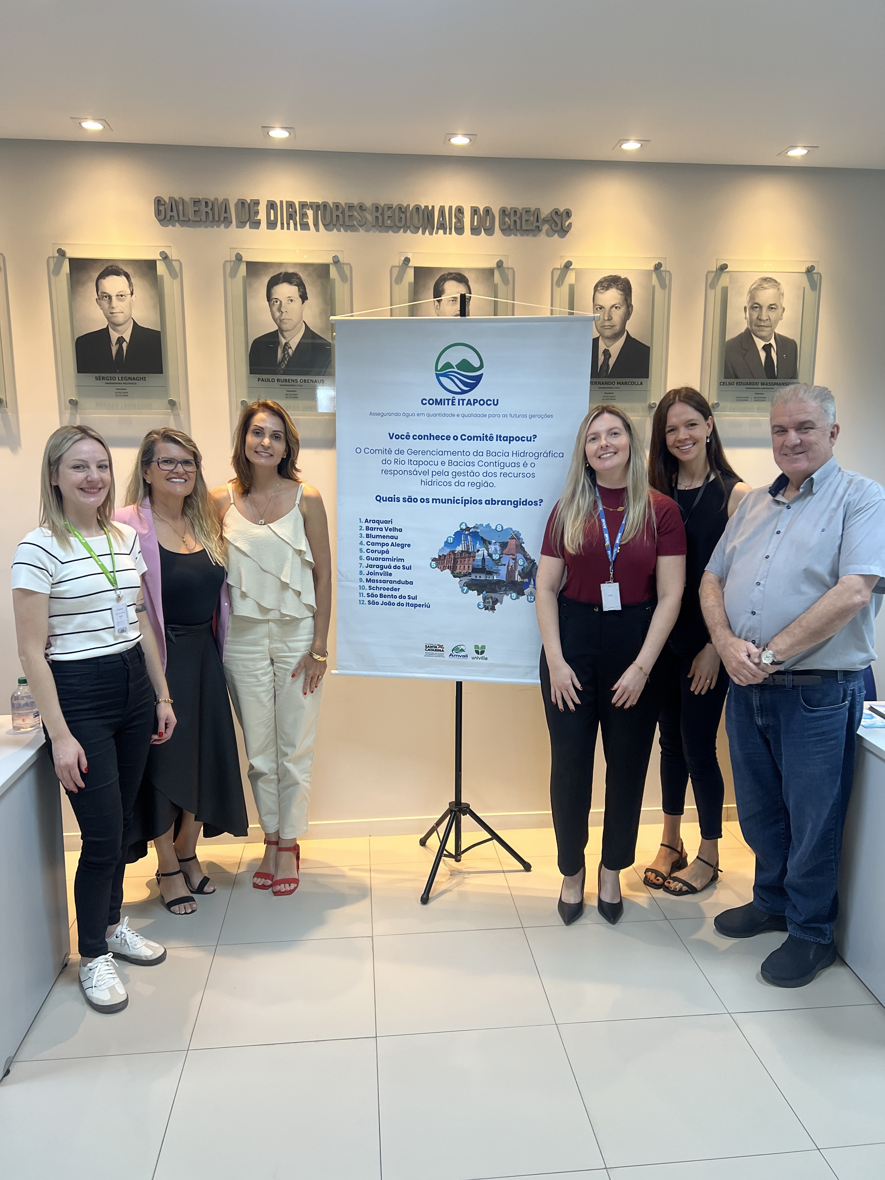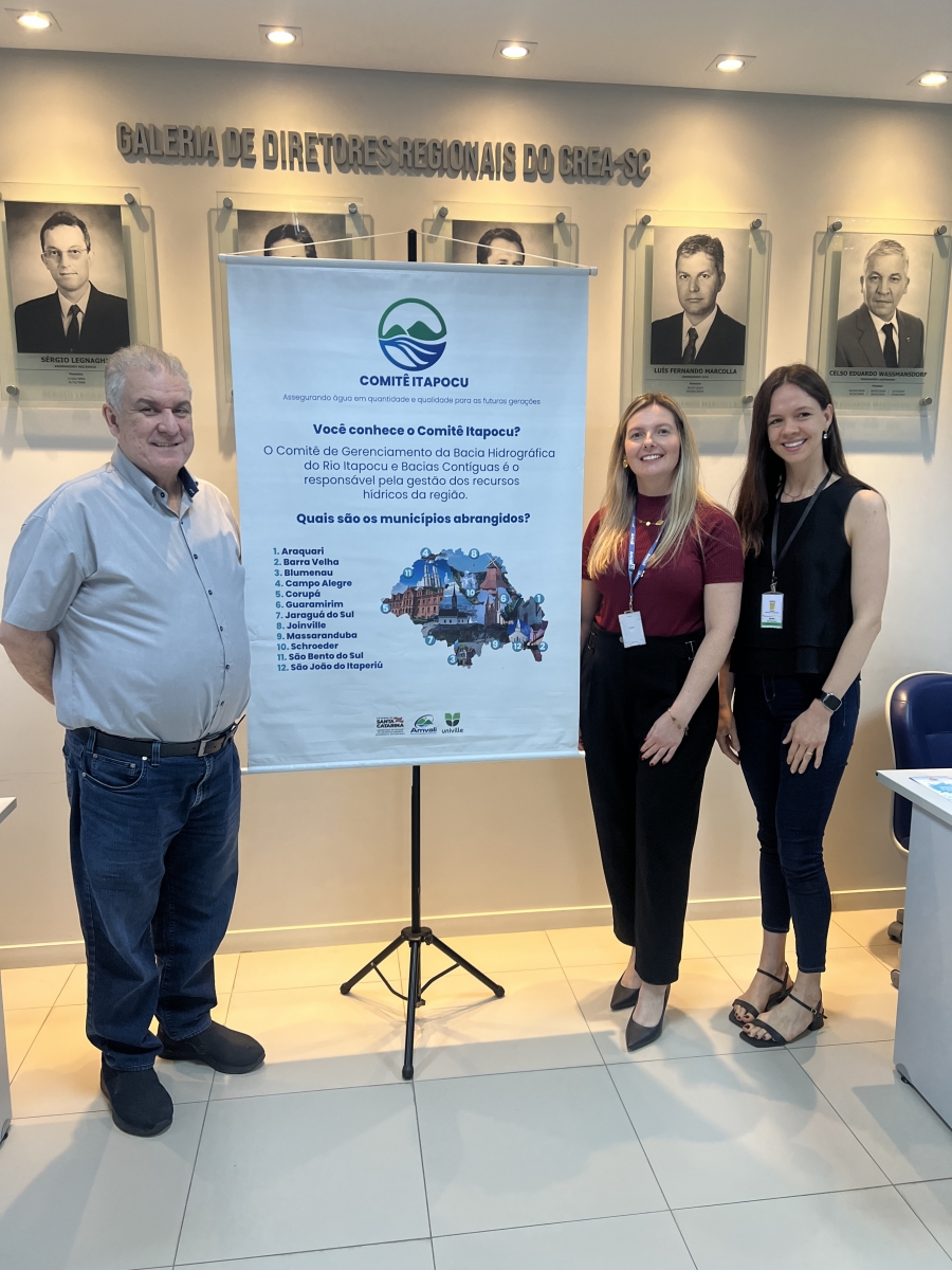 Ao final da reunião, foi realizada a eleição e posse da nova diretoria do Comitê Itapocu para o biênio 2025–2027. Foram eleitos: Karine Rosilene Holler (AMVALI) como Presidente, Pedro Toledo Alacon (Companhia Águas de Joinville) como Vice-presidente e Jéssica Michalak Besen (Município de Schroeder) como Secretária Executiva.