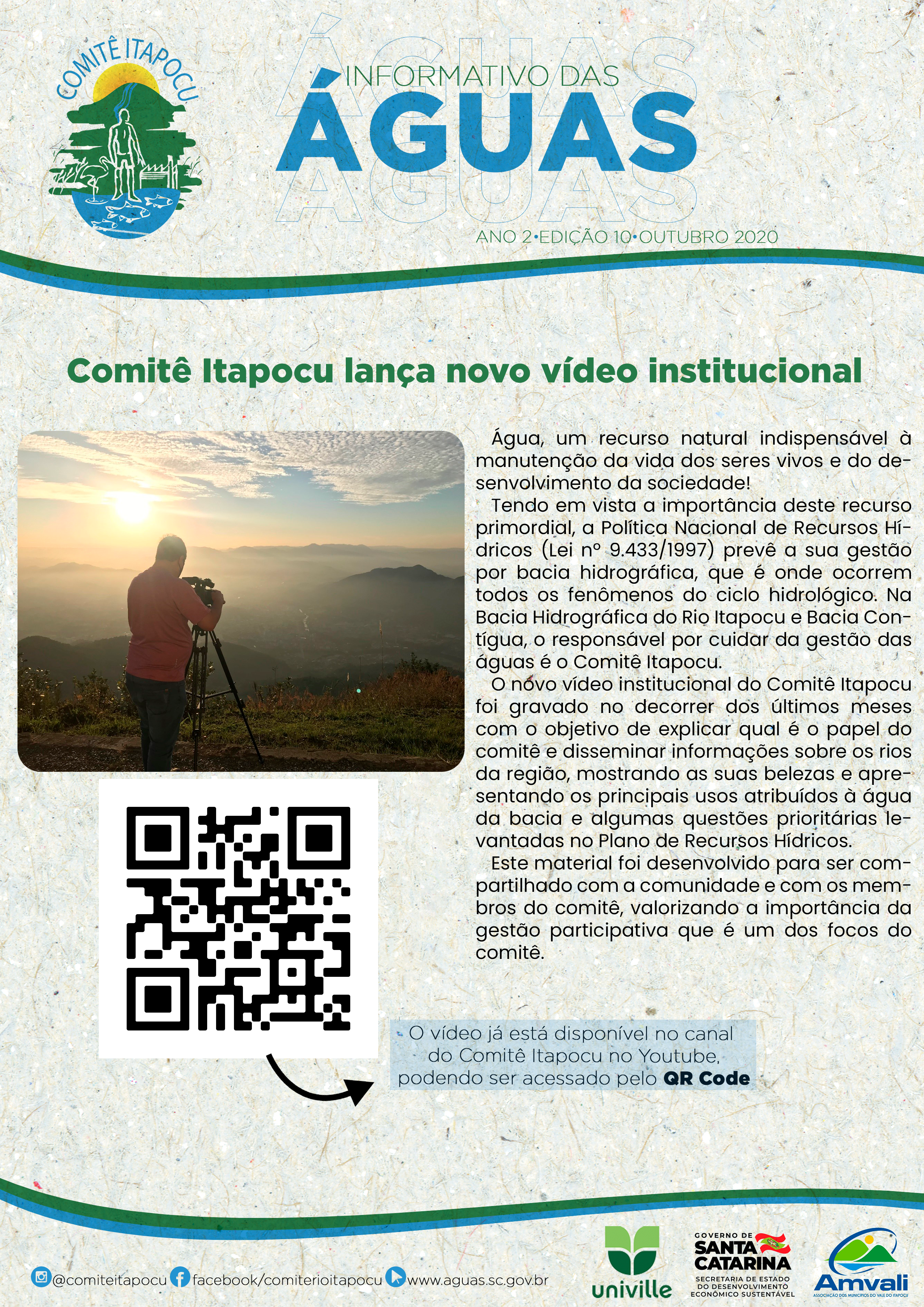 Este é o Informativo das Águas digital do Comitê Itapocu, edição 10 de 2020, contendo as notícias referentes ao mês de outubro de 2020.
