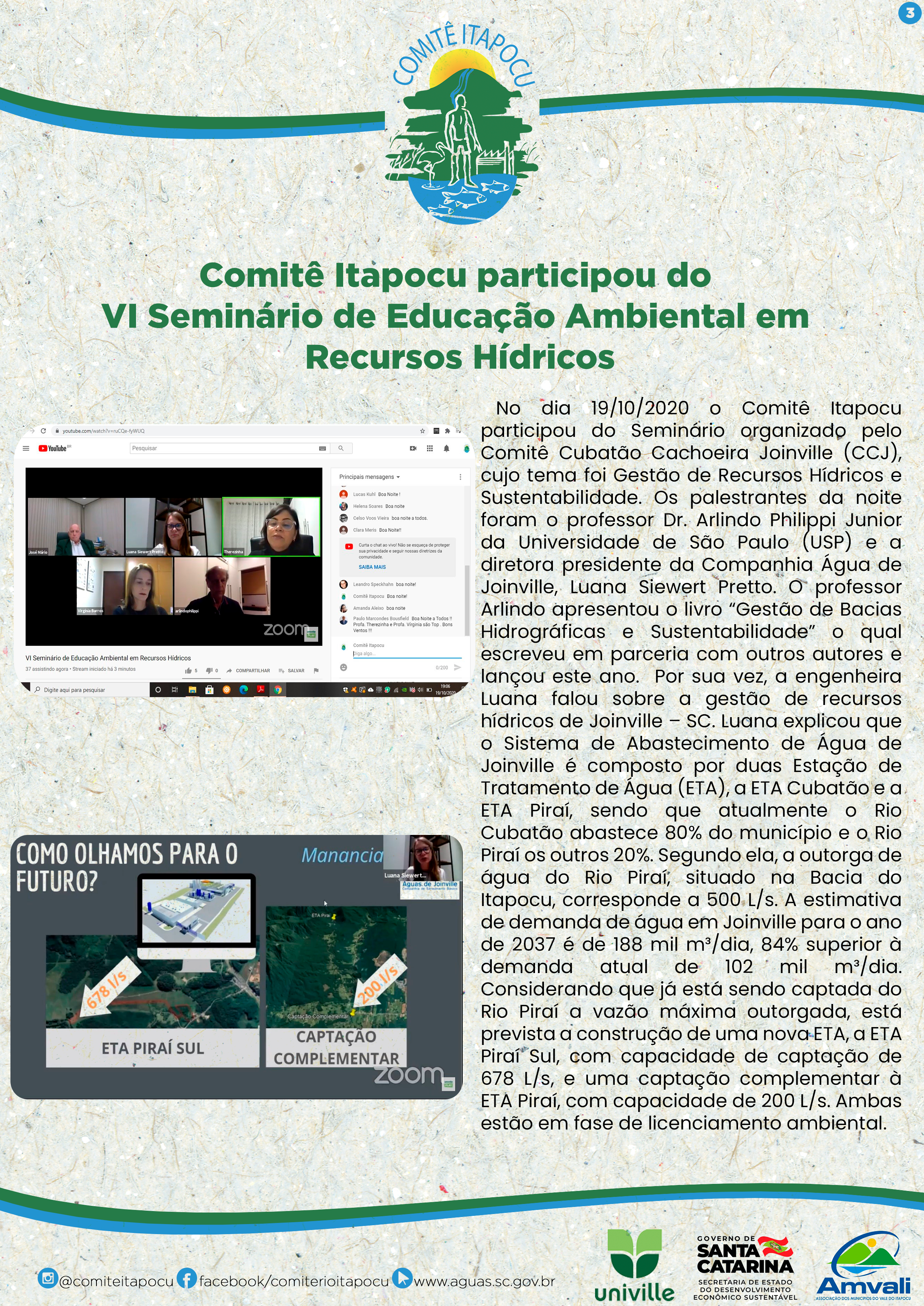 Este é o Informativo das Águas digital do Comitê Itapocu, edição 11 de 2020, contendo as notícias referentes ao mês de novembro de 2020.