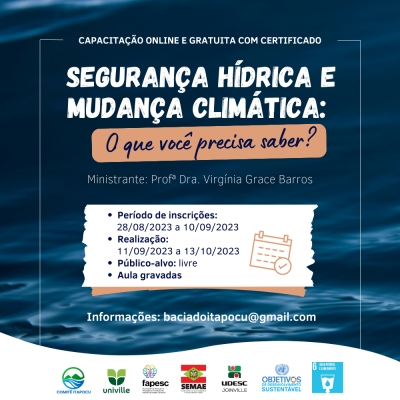 Inscrições abertas para a capacitação "Segurança Hídrica e Mudança Climática: O que você precisa saber?"