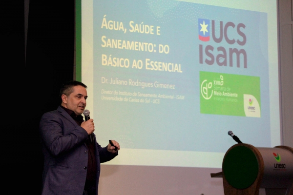 A conexão entre a saúde, o completo estado de bem-estar do ser humano, o saneamento e a dependência da disponibilidade de água neste processo permearam a palestra do professor Juliano Gimenez, diretor do Instituto de Saneamento Ambiental da Universidade de Caxias do Sul (UCS/RS), realizada no Auditório Ruy Hülse na noite de segunda-feira (5/06).