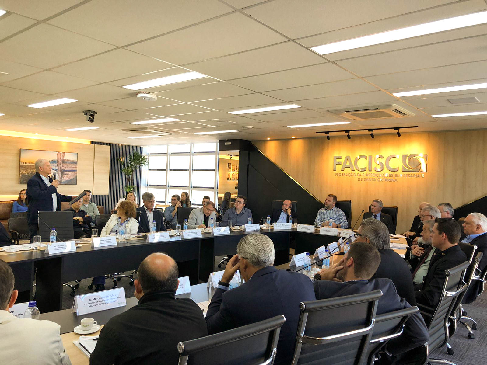 Na última quarta-feira, dia 07, o presidente do Comitê de Gerenciamento da Bacia Hidrográfica do Rio Tubarão, Complexo Lagunar e Bacias Contíguas participou de mais um encontro promovido pela Federação das Associações Empresariais de Santa Catarina (FACISC). Na oportunidade, o presidente do órgão evidenciou as principais demandas do órgão para o Secretário de Estado de Infraestrutura e Mobilidade. O evento, que contou também com representantes de diversos setores, foi um momento de diálogo aberto e produtivo para identificar as necessidades da classe empresarial catarinense.