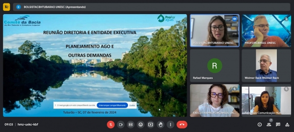 Servindo como marco oficial para a retomada dos trabalhos, a diretoria do Comitê de Gerenciamento da Bacia Hidrográfica do Rio Tubarão, Complexo Lagunar e Bacias Contíguas realizou sua primeira reunião de 2024 com a equipe técnica do ProFor Águas Unesc. O encontro, ocorrido nesta quarta-feira, dia 07, teve como propósito apresentar os resultados do último ano e planejar atividades para 2024.