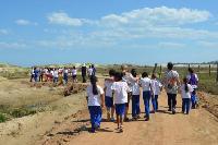 "Na quarta-feira, 17 de outubro, o Comitê do Rio Urussanga efetuou mais uma saída a campo com cinquenta escolares do 5º ano, integrantes de escolas municipais de Criciúma e Içara. A ação faz parte do projeto de educação ambiental na bacia ""Minha Escola, Meu Rio"". A partir das nascentes, os alunos recebem um folheto com mapa ilustrado da bacia e com atividades que permitem continuar em sala de aula. Guiados por professores integrantes da comissão de educação ambiental em apoio ao Comitê, os participantes são levados a observar áreas preservadas e áreas degradadas ao longo de todo o percurso até a foz do Rio Urussanga. A coordenadora pedagógica da escola Linus João Rech, de Criciúma, Maria Ivonete Meister, aprovou a iniciativa do Comitê. “Às vezes os alunos ficam sem entender as explicações na sala de aula e não conseguem imaginar este universo, mas vivências como estas deveriam acontecer sempre para que possamos ampliar os trabalhos sobre conscientização”, afirmou. As percepções das crianças em relação às questões que envolvem a natureza ultrapassam o ambiente de uma instituição de ensino. “O rio fica melhor sem poluição e a população agradece”, comentou Vinícius dos Santos, de 10 anos, estudante do 5º ano da Escola Municipal Teófilo Cassemiro Silveira, de Içara, no encerramento da saída a campo para conhecer a Bacia Hidrográfica do Rio Urussanga."