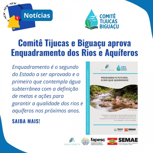 Foi aprovado nesta quinta-feira, dia 21 de novembro, o Enquadramento dos Rios e Aquíferos das Bacias Hidrográficas do Rio Tijucas, Rio Biguaçu e bacias contíguas, durante a 64ª Assembleia Geral Ordinária do Comitê Tijucas e Biguaçu. O projeto foi elaborado pelo Instituto Água Conecta, junto ao Comitê Tijucas e Biguaçu, e contou com Assembleias Públicas com ampla participação da comunidade local e validações técnicas dos representantes das instituições-membro do Comitê. Com as medidas aprovadas, espera-se que a qualidade das águas e aquíferos mantenha-se adequada e melhore em algumas regiões, ao longo dos próximos anos, garantindo a sustentabilidade e o futuro das atividades econômicas demandadoras de água na região.