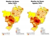 Na região Sul do Brasil, conforme o Monitor de Secas, as anomalias positivas de precipitação e a melhora nos indicadores fizeram com que a seca moderada também recuasse no Rio Grande do Sul.